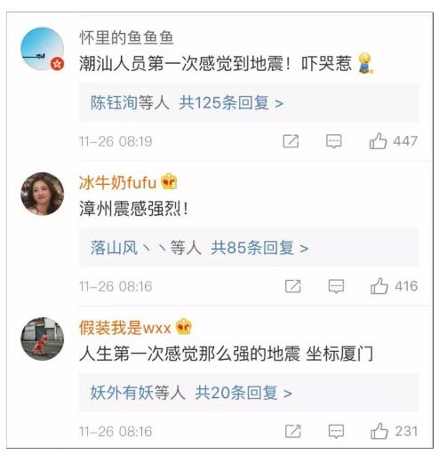 福建、廣東(廣州、深圳、東莞、潮汕等)網(wǎng)友紛紛表示有震感。